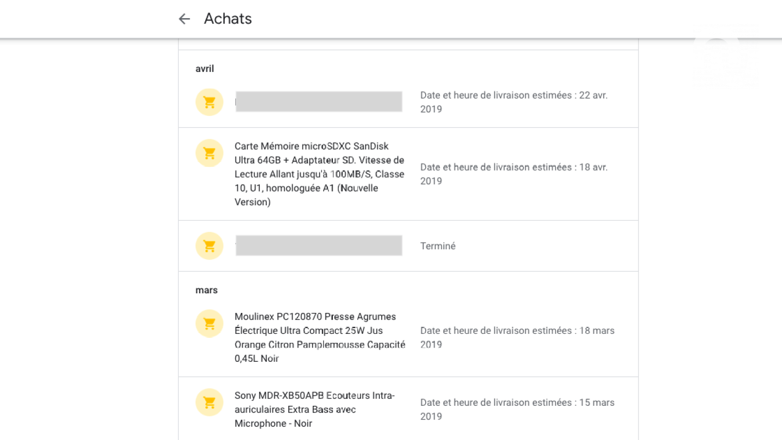 Dernière info croustillante liée à Gmail est la liste des achats :