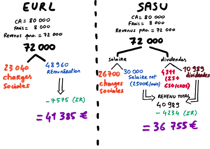j’interviens pour éclaircir votre réflexion. car il est clair que les rémunérations du Gérant majoritaire (associé unique d’Eurl) sont moins soumises à cotisations qu’un président de SASU « assimilé salarié ».