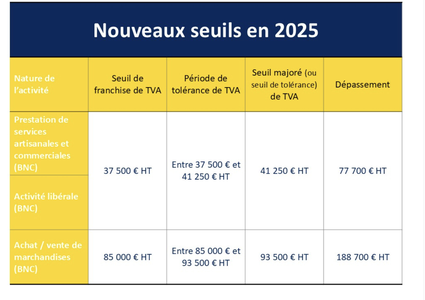 Attention, ça devait bouger niveau seuil de TVA en 2026 initialement (seuil à 25 K €), mais la réforme a été suspendue…